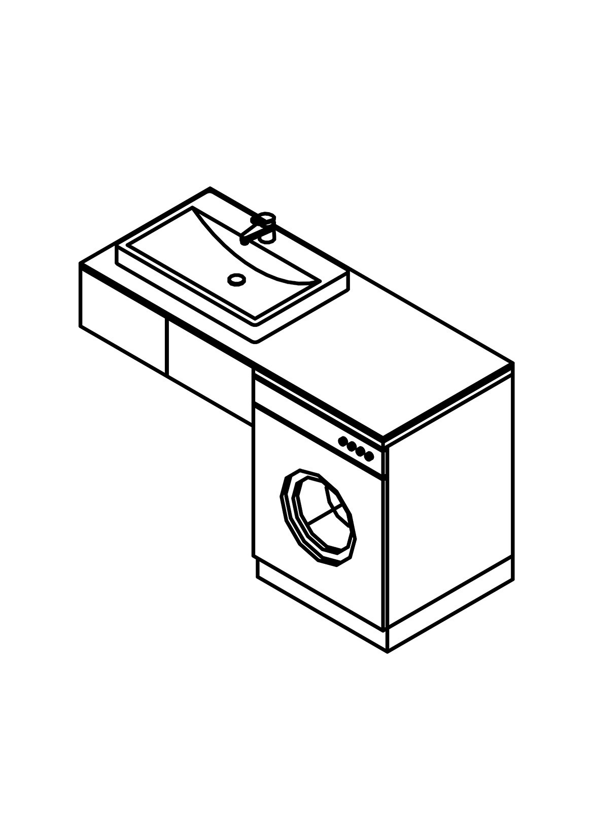 Открывание стиральной машинки всегда должно быть на 90 градусов, а то и до полного открывания двери барабана. Типичное решение сегодня когда стиральная машинка стоит под одной столешницей вместе с умывальником. Есть несколько вещей которые нужно учесть:
