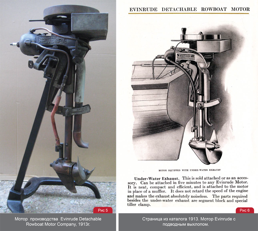 И сразу в привычной нам вертикальной компоновке- с двигателем наверху, вертикальным валом (дейдвудом) и редуктором с винтом внизу. Эта схема оказалась настолько удачной, что используется в подавляющем большинстве современных моторов до сих пор