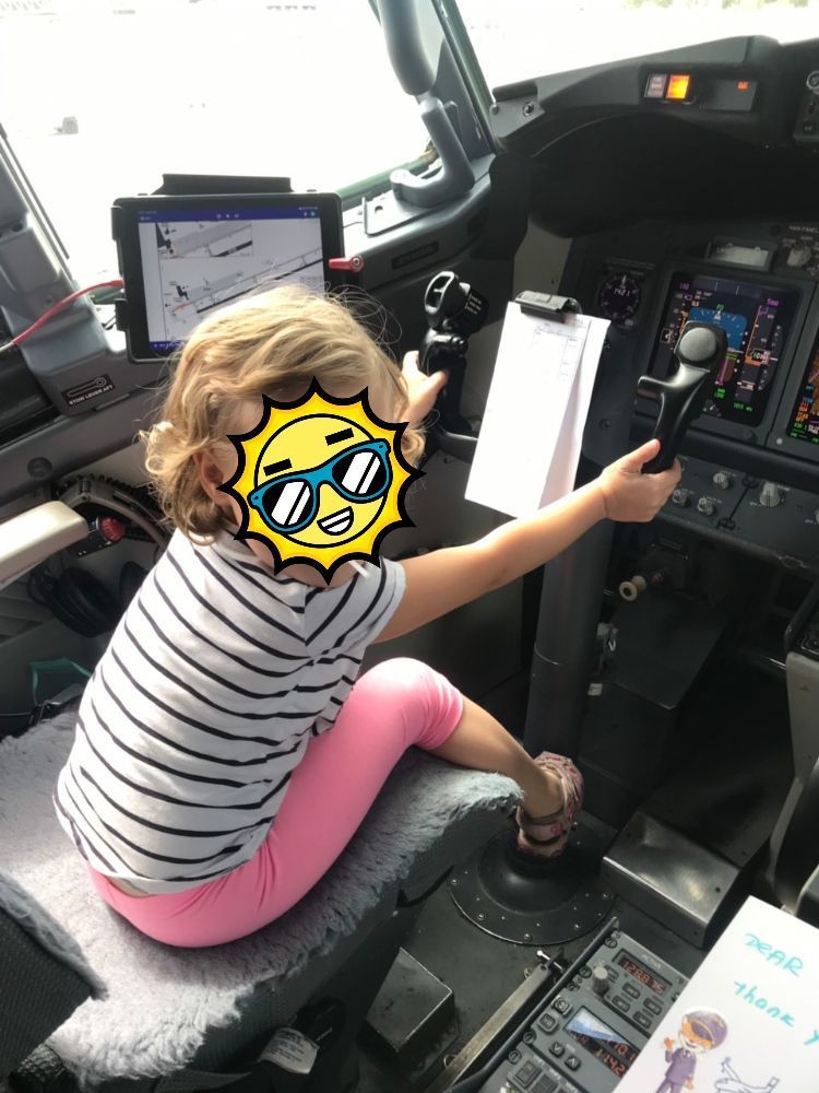 Мой ребенок уже получил от экипажей самолётов огромное количество улыбок, похлопываний по косичкам, шоколадок, и конфет. Но самый запоминающийся подарок подарил нам капитан самолёта "jet2 airways". Он разрешил моей дочери посидеть в кабине самолёта, на своем рабочем месте.