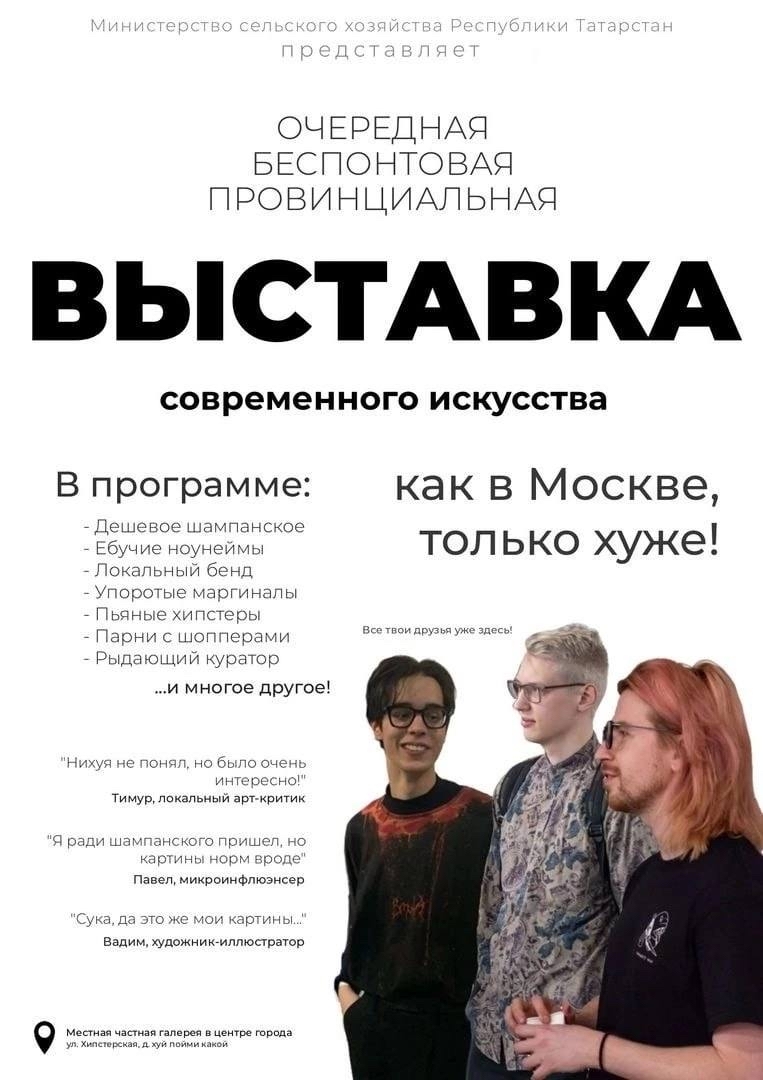 244 MEMEzya Как реалистично описали 2 года назад https://t.me/memezya/3979 Картинка с текстом Выставка Реклама Объявление Пародия Мат Провинция 2 1 Ещё 0