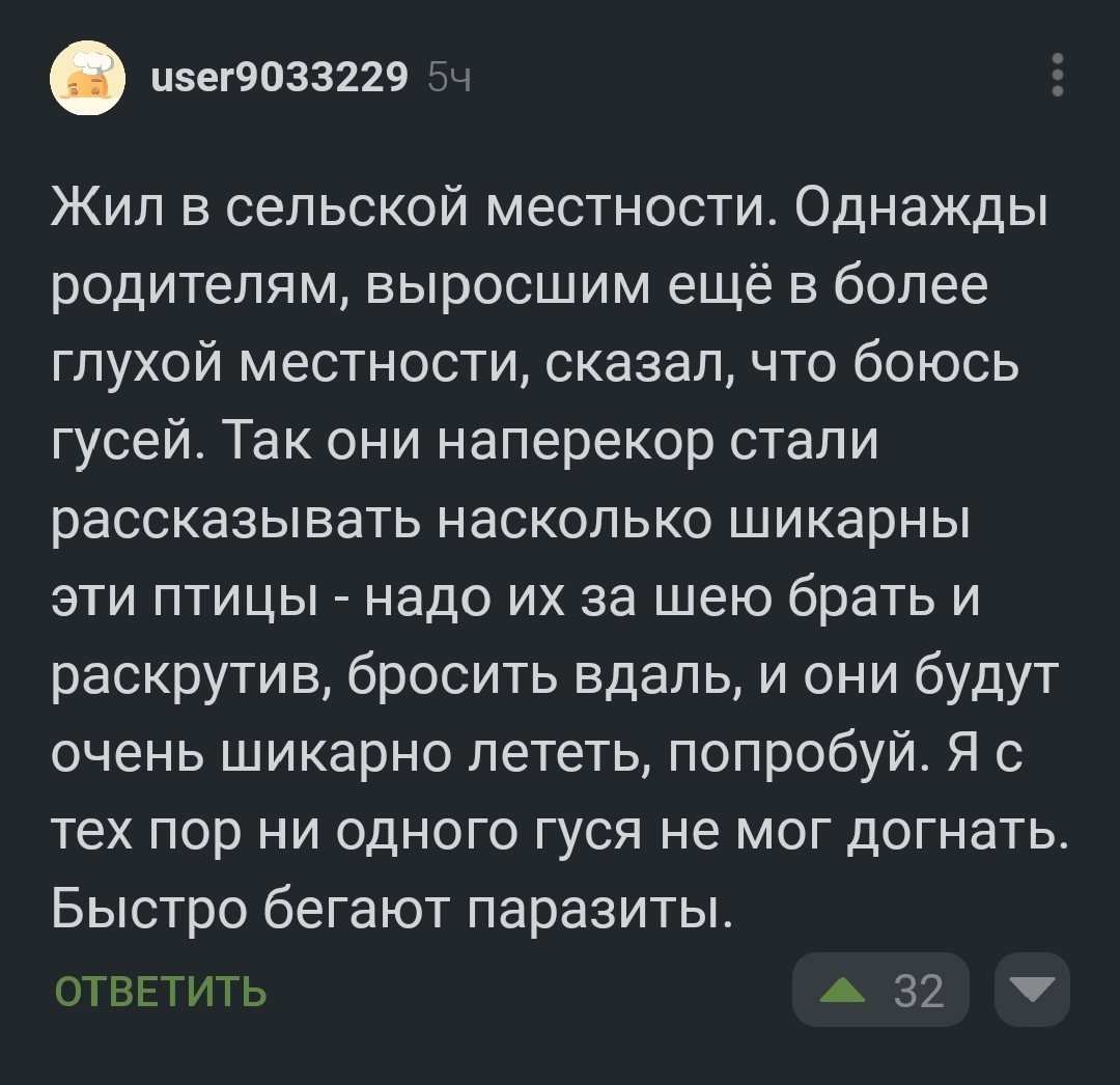 3243 ORTUM Как ребёнку перестать бояться гусей1 1 месяц назад #comment_376482119 Гусь Дети Лайфхак Воспитание детей Птицы Скриншот Комментарии на Пикабу 334 17 3 2 2 1 Ещё 1