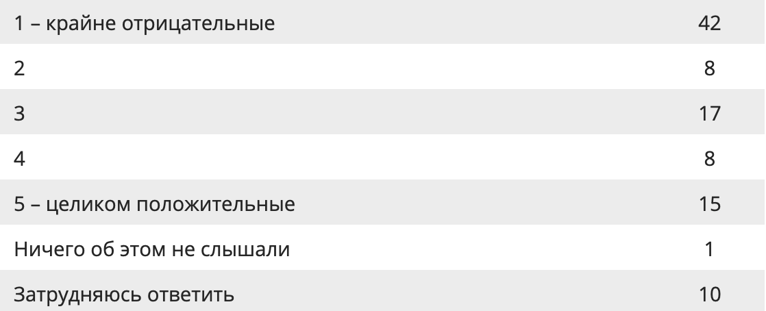 Более половины россиян (59%) положительно восприняли уход Медведева. Этот перевес характерен для всех социально-демографических групп, а также для населённых пунктов всех размеров. 47% россиян положительно восприняли назначение Михаила Мишустина, отрицательно – 18%.