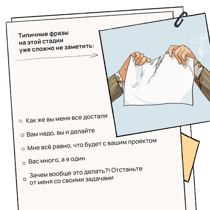 Грязная голова или психоз из-за зависшего компа — не обязательно признаки выгорания. У человека просто может что-то случиться в личной жизни, что на несколько дней повлияло на его состояние. Поэтому нужно смотреть на ситуацию комплексно и хотя бы на протяжении 2 недель.
