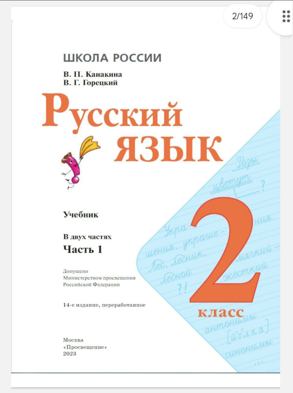 Учебник 2 класса по Русскому языку (ВП Канакина, В.Г. Горецкий)