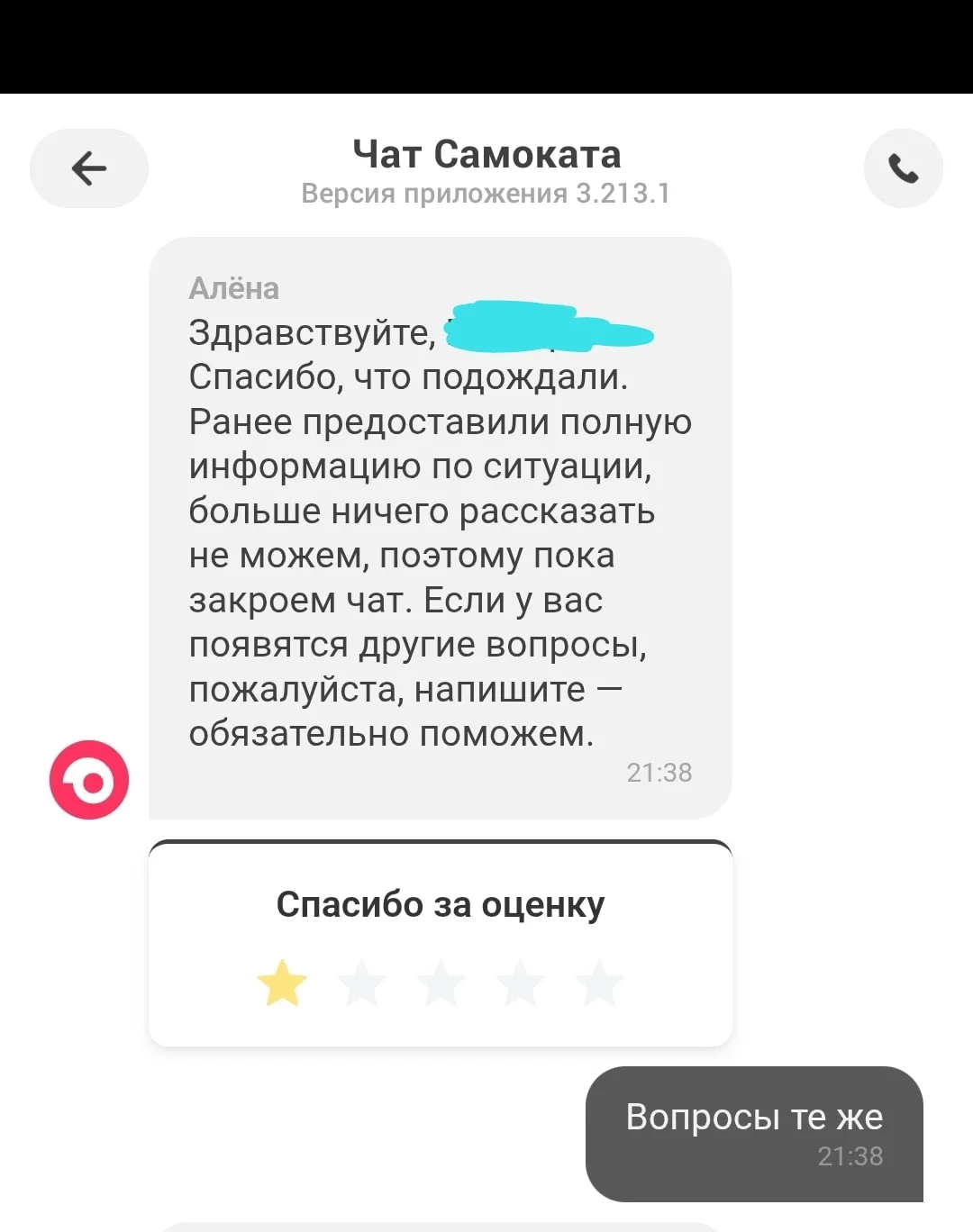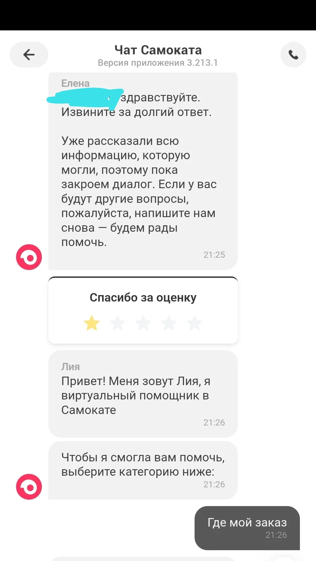 Далее следовали ещё около 8 попыток возобновить чат с поддержкой, каждая из которых заканчивалась примерно так...Елена, Алена ,привет!