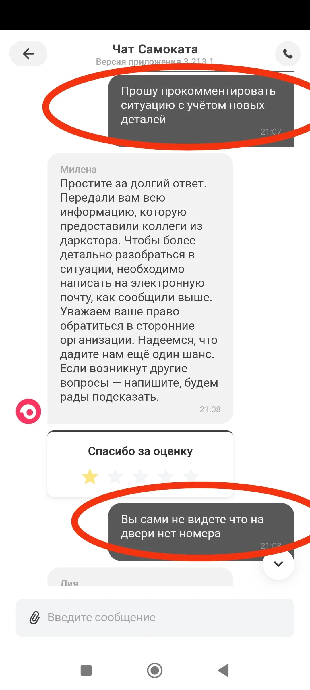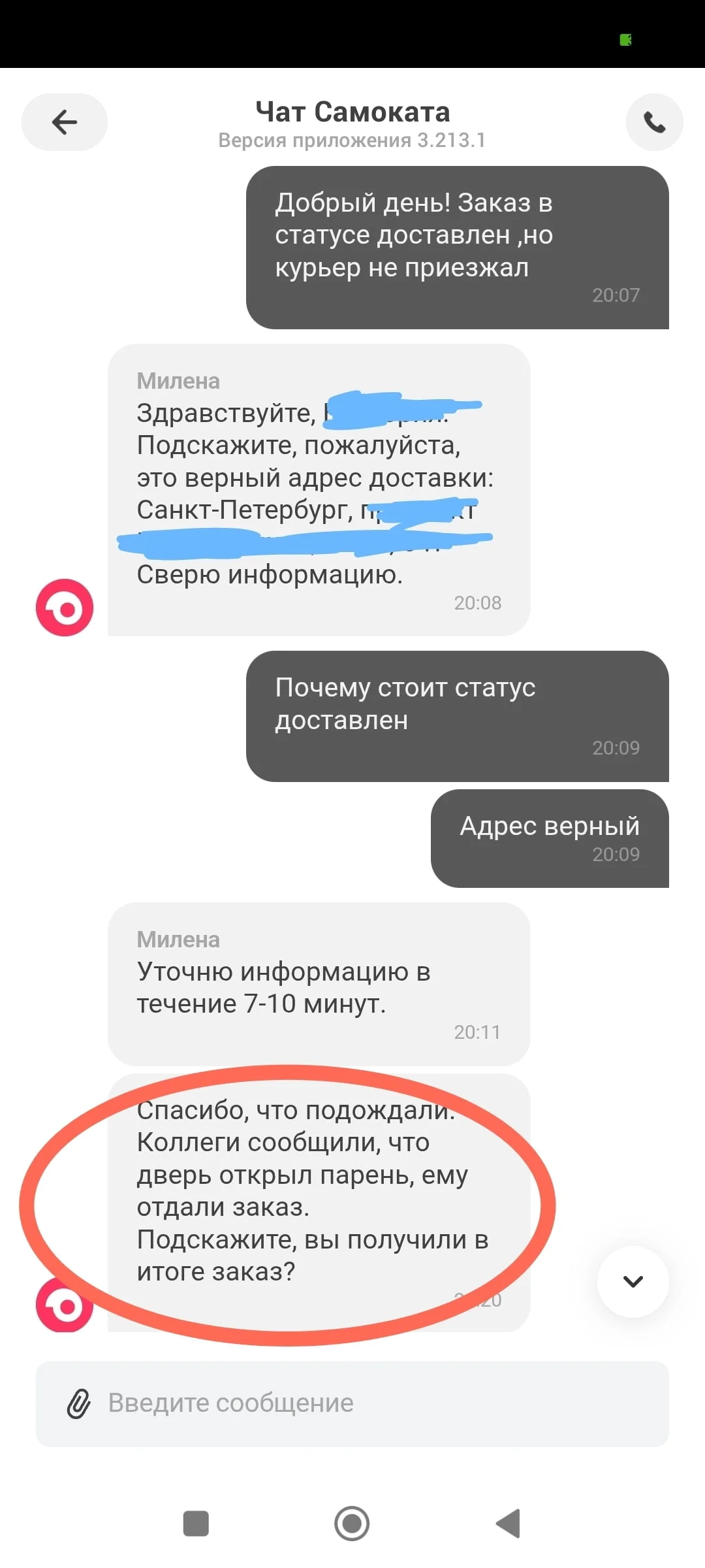 стало понятно, насколько не клиентоориентированный сервис у самоката. Они не несут ответственность за свою работу и работу своих курьеров партнёров. Как оказалось, таких историй очень много, а поддержка никогда не разбирается и не поддерживает своего клиента, сумма заказа у нас была пустяковая, хорошо, что не 10 тысяч, ато потом докажи ,что не ты тот "парень" в шортах и футболке ;)