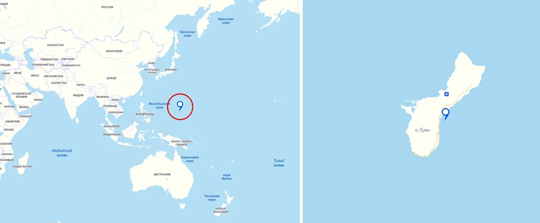 Один из этих островов – остров Гуам, совсем небольшой. Его площадь – около 500 квадратных километров, это в 5 раз меньше Москвы. Давайте прогуляемся по нему. Сначала подлетаем на самолёте...