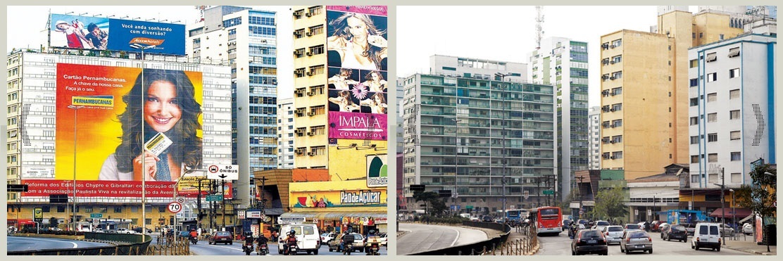 В 2007 году власти Сан-Паулу (20 млн. население, на секундочку) решили запретить наружную рекламу. Мэр Жилберту Кассаб принял закон «Чистый город» и приравнял наружную рекламу к «визуальному загрязнению».