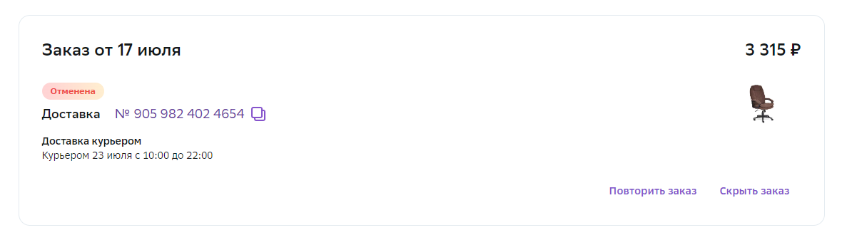 Спустя 2 дня приходит возврат - стула не оказалось у продавца, закажите другой. Но почему-то он продолжает продаваться на площадке дальше.