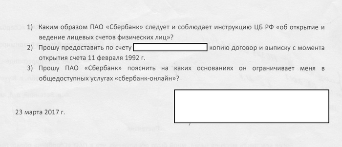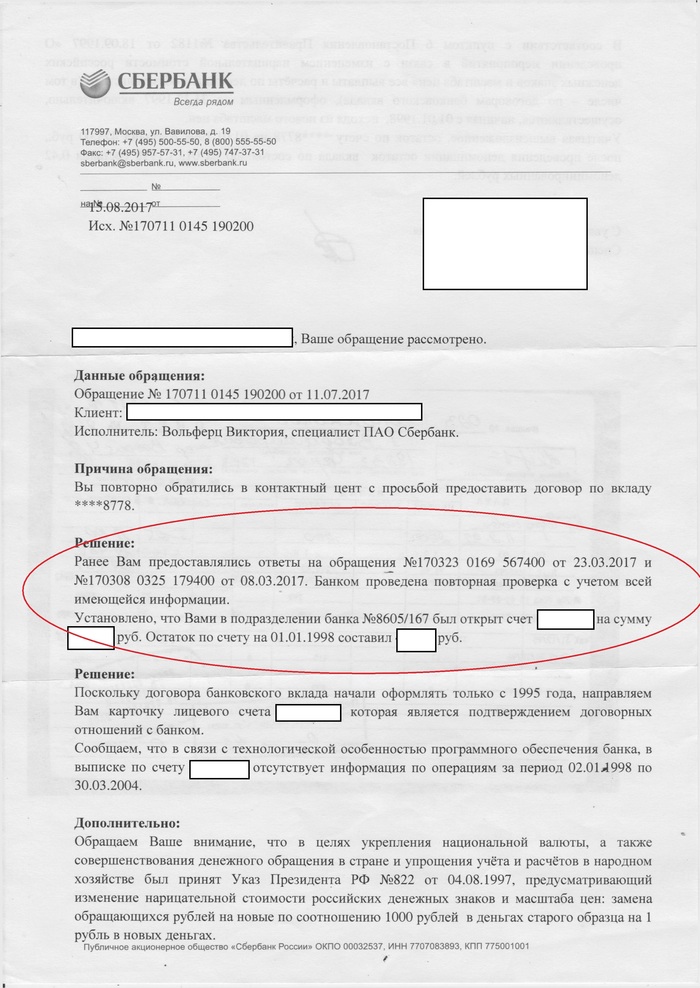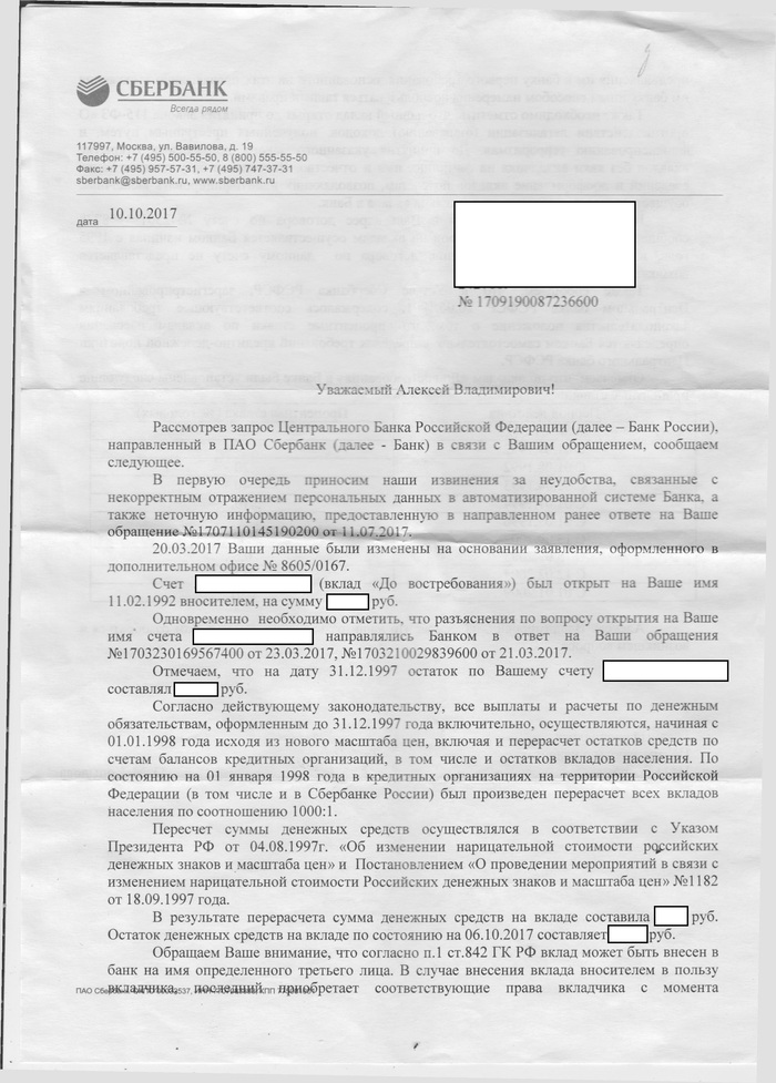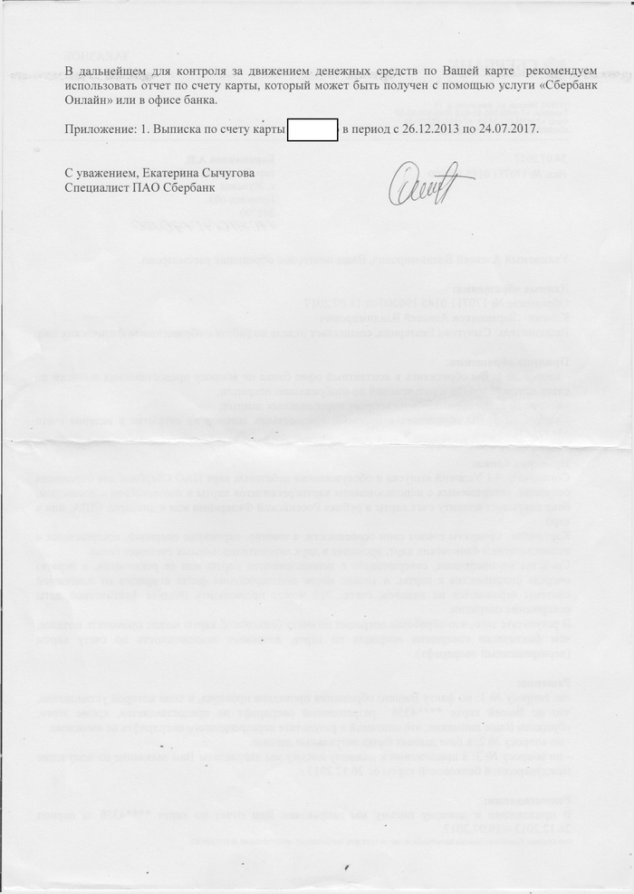 Устав терпеть хамство со стороны ПАО "Сбербанк", я описываю всю ситуацию в ЦБ. ЦБ берет под контроль этот вопрос, переправляет банку претензию и я получаю ответ, который собственно не дает ни каких ответов, а рождает новые вопросы к этому банку.