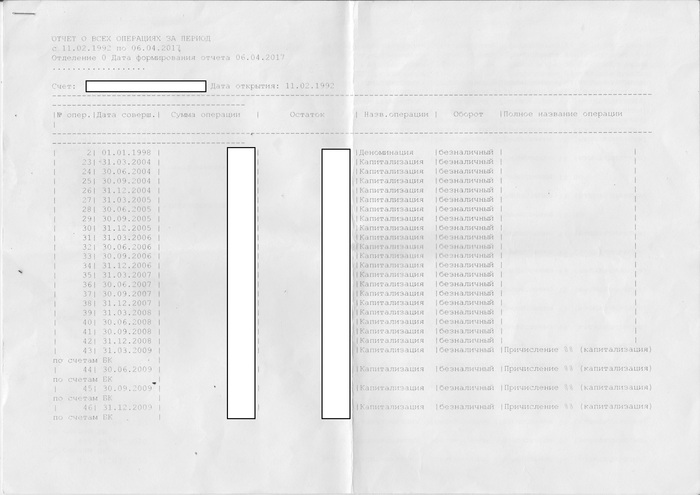 Вопрос второй, тут всё просто, я спустя 25 лет узнаю что на моё имя открыт счет, и хочу увидеть на каких условиях данный счет открывался, размер денежных средств которые вносили, кто вносил данные денежные средства, как начислялись проценты и т.д.