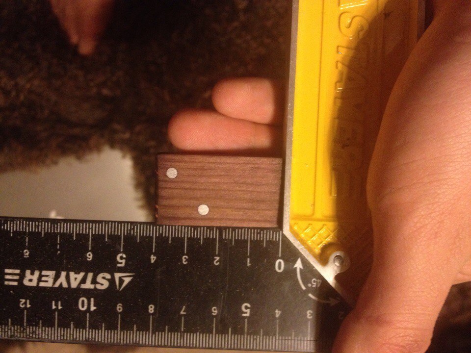 Следующим делом создал кондуктор, который значительно облегчает и ускоряет процесс, а также повышает точность нанесения точек. Прикладываем его на заготовку, прижимаем струбциной и сверлим НЕ СКВОЗНЫЕ дырдочки ( один раз увлекся и перестарался :) )