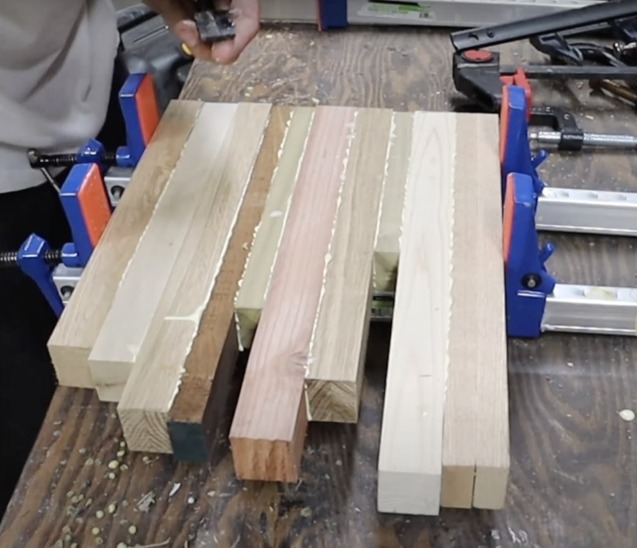 Даже 2–3 простые F-струбцины + прокладки из фанеры дают отличный результат.