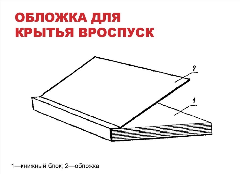 Самым простым типом обложки для выбранного формата подходит "обложка для крытья вроспуск". Эта обложка приклеивается к корешку и корешковому полю блока (~5 мм от края).