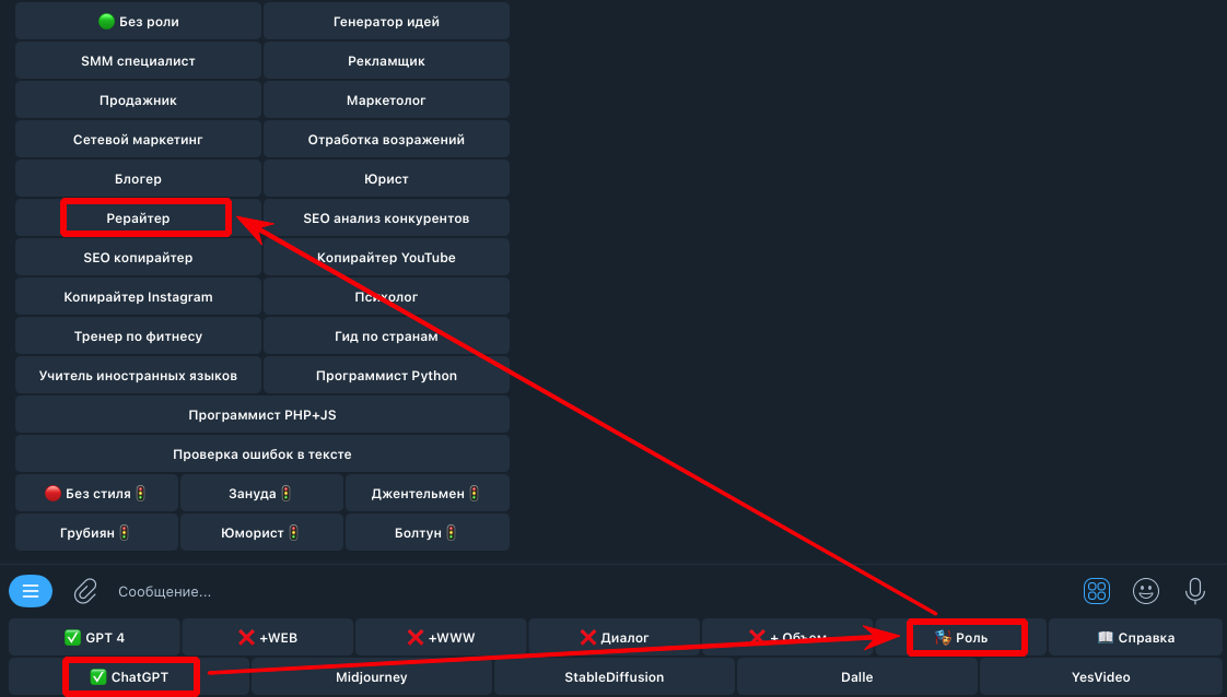 Перейдем к делу. Я хочу поделиться с вами тем, как можно бесплатно переписывать статьи при помощи нейросети Chat GPT через бота в Telegram, который я лично использую для этих целей. Этот подход позволяет мне создавать контент очень быстро. Вы вольны выбирать любого бота или сервис с аналогичными возможностями, однако не во всех мне понравилось качество работы.