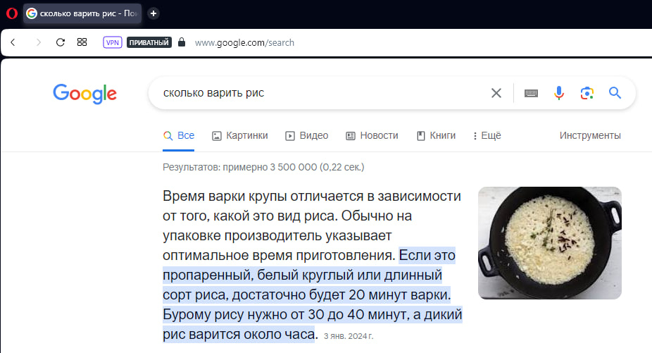 Во первых не все это знают во вторых так работает не только с рисом.Тут сама суть проблем с поисковиком показана.