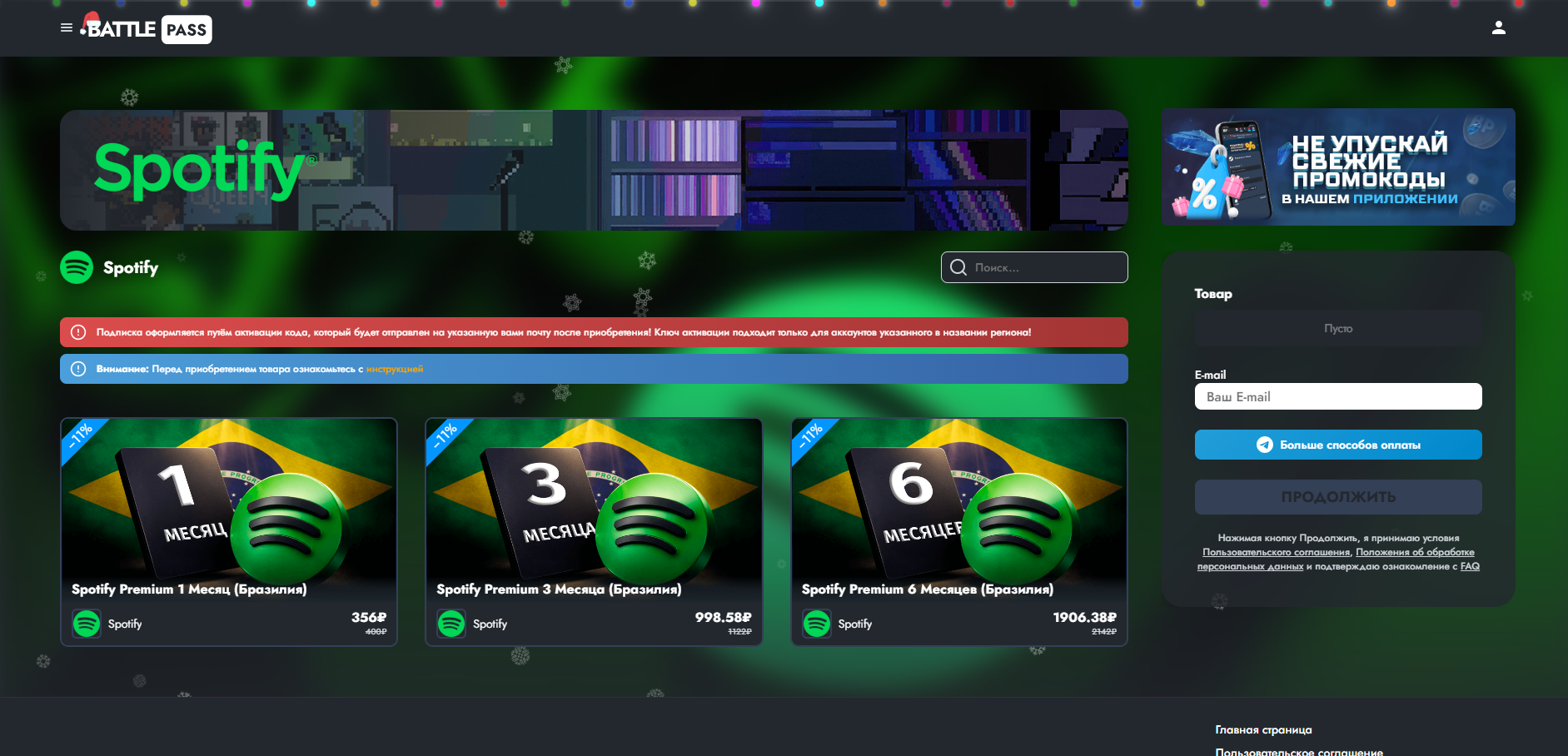 4. BATTLEPASS — один из лучших сайтов с минимальной комиссией для оплаты Spotify