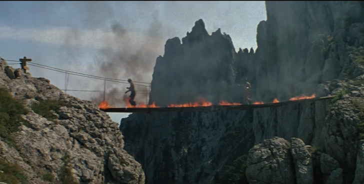 21. Также создатели фильма просто не могли обойти вниманием эффектные контуры знаменитой крымской горы Ай-Петри. Их нетрудно заметить, когда герои преодолевают горящий мост.
