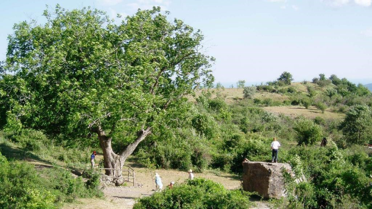 Кстати, рядом с деревом стоит камень, который называют камнем Варлей. Нередко можно услышать, что именно на нем Наталья Варлей исполняла свой танец в «Кавказской пленнице», когда пела песню о белых медведях. Впрочем, некоторые знатоки творчества Гайдая утверждают, что она танцевала на другом камне. Так или иначе, камень мелькает в фильме «Спортлото-82».