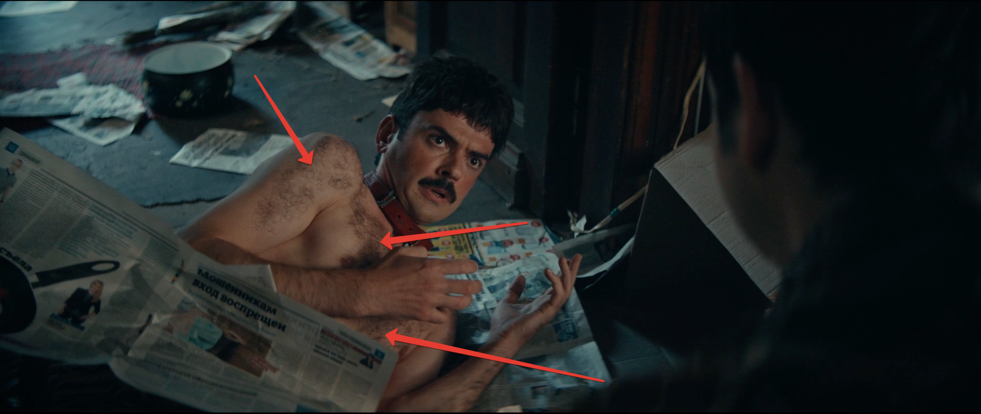 4. Чтобы придать Антону Лапенко больше "собачности" грим наклеивал ему на грудь и плечи пучки чёрных волос.