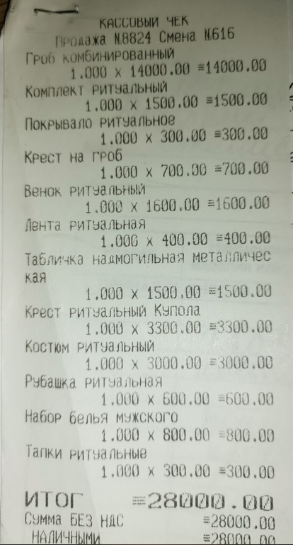 Поржал, говорю - "не, так не пойдет". Начали мяться и что-то мямлить, говорю "Послушайте я не в первый раз хороню родственников, я знаю что вы представляете ИП, работающего при морге, и основная масса услуг входят в мед.страхование, мне нужен конкретный прайс с расписанными услугами - что именно вы предоставляете на эту сумму". Начали бубнить что прайса конкретного нет, но все сделают в лучшем виде. Я говорю "это все замечательно, но вот бумажка у вас лежит, напишите мне конкретно что делается по полису ОМС, а что делаете вы, и каждую услугу с суммой". Еще пару минут пытались съехать с того, что я попросил, я просто сидел с каменным еблом и ждал. Расписали.