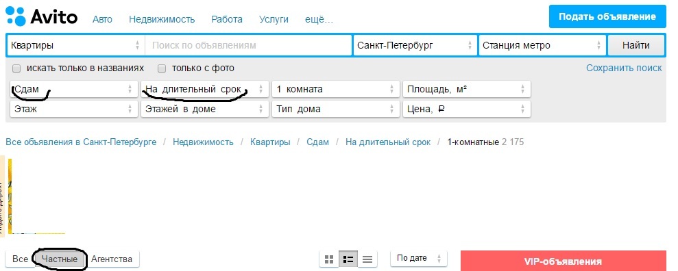 Чтобы найти тут собственника, нужно выбрать несколько пунктов. Выбрать все необходимые тебе параметры (кол-во комнат, метро и т.д) и самое главное: "на длительный срок" и "частные". Если тут ты наткнулся на "частное" объявление, позвонил, а там агент, то сразу же жалуешься на сайте и ушлого агента банят. Все просто) Как начать разговор с человеком с авито: "Здравствуйте, я по поводу аренды такой-то квартиры. Актуальна? Вы собственник? Свидетельство о праве собственности на руках? Когда можно посмотреть?" Если сдает друг, брат, сват, убедитесь, что есть нотариально заверенная доверенность. И чтобы срок действия не закончился.