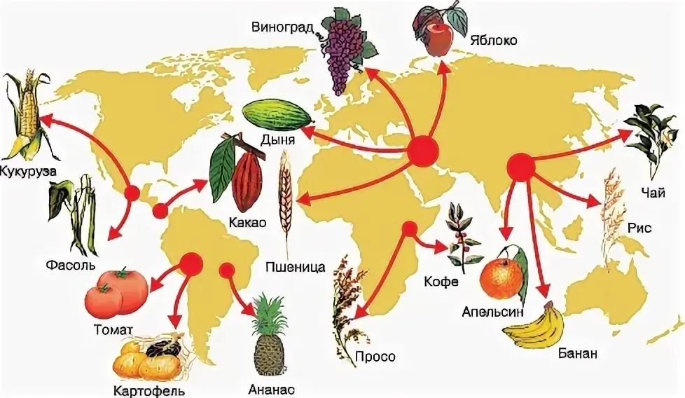 Около 10 тысяч лет назад на Ближнем Востоке произошло событие, известное как неолитическая революция. Люди начали культивировать злаки – пшеницу, ячмень, просо, а также бобовые и лен. Независимые центры земледелия возникли в Китае (рис, просо), в Мезоамерике (кукуруза, бобы, тыква), в Андах (картофель, киноа).