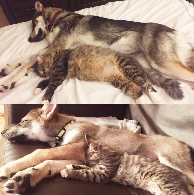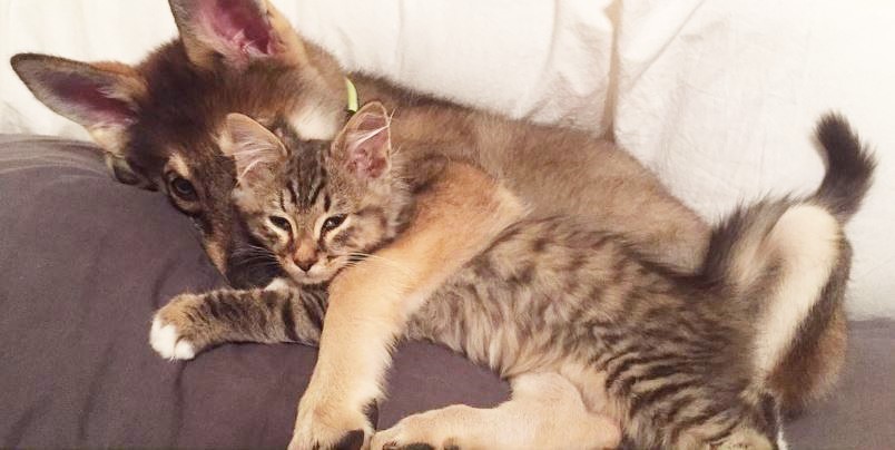«Они прекрасны. Они обнимаются так, как делали это, когда они еще были щенком и котенком».