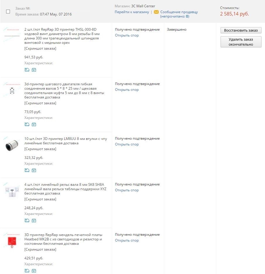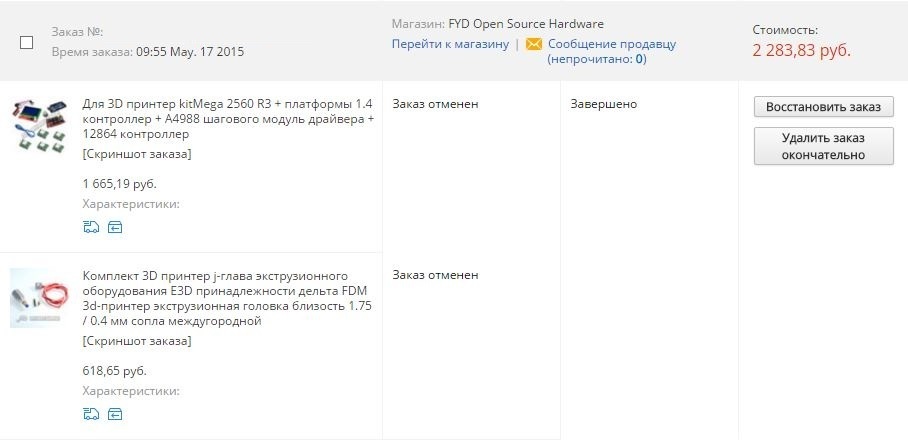 Ниже приведен список тех комплектующих, которые необходимо будет приобрести для сборки 3D-принтера. Электроника на базе платы arduino mega 2560 и платы расширения ramps 1.4.