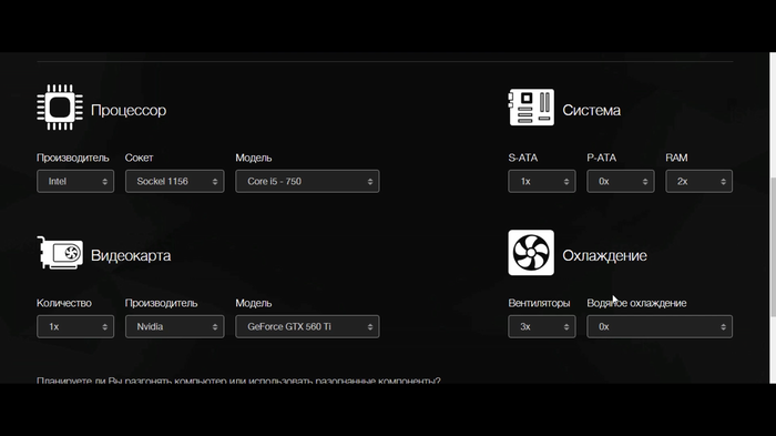 Рассчитать можно так, переходим на сайт BeQuiet (найти можно в поисковике по запросу «калькулятор мощности блока питания» или «рассчитать блок питания»)