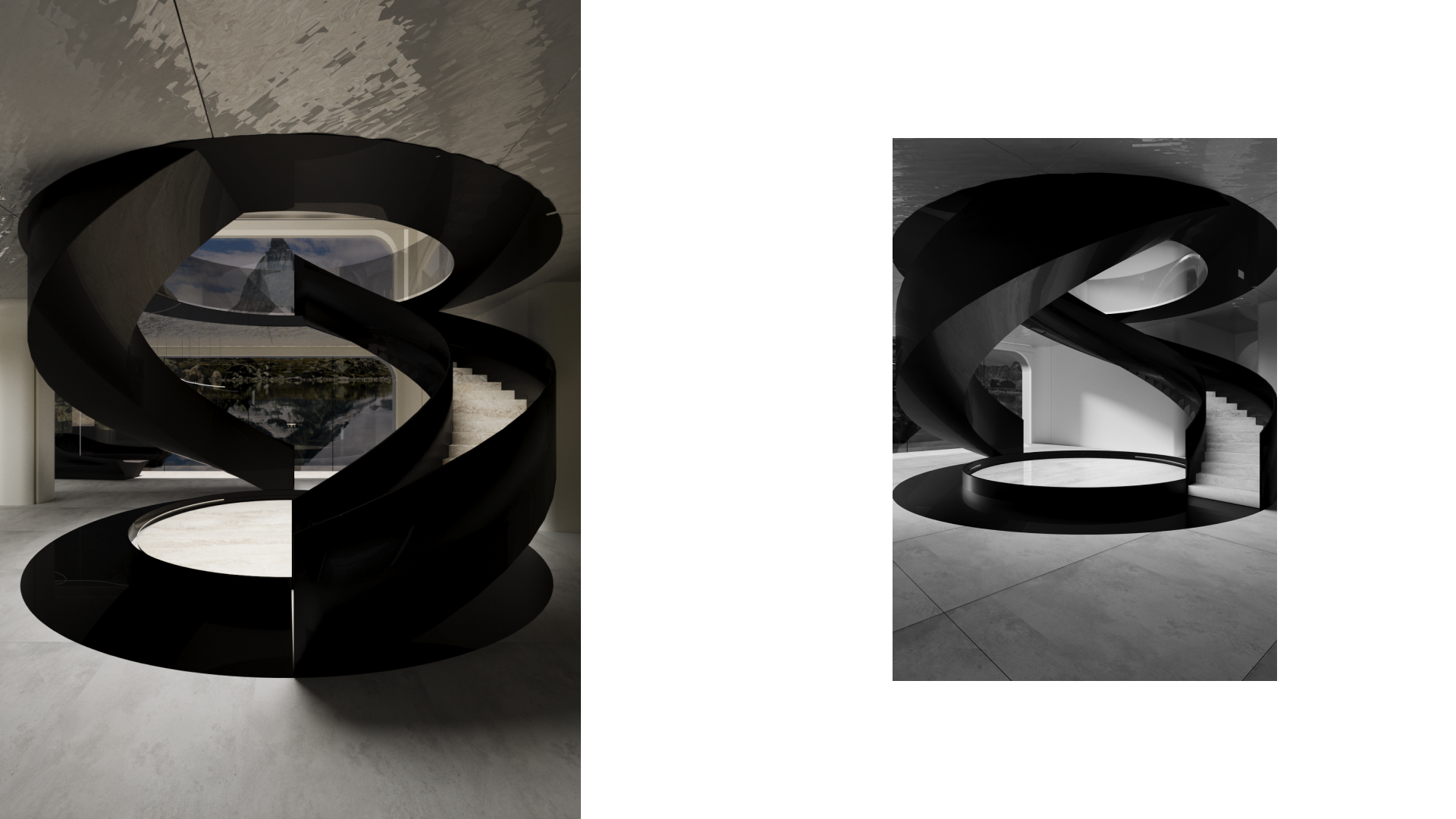 • 3dsmax + CoronaRenderer - Финальным этапом становится фотореалистичная визуализация в Corona Renderer, где я довожу изображение до совершенства. В 3ds Max основное внимание уделяется созданию атмосферы: тщательной настройке материалов для достижения максимального реализма и работе со светом, который формирует настроение всей сцены.