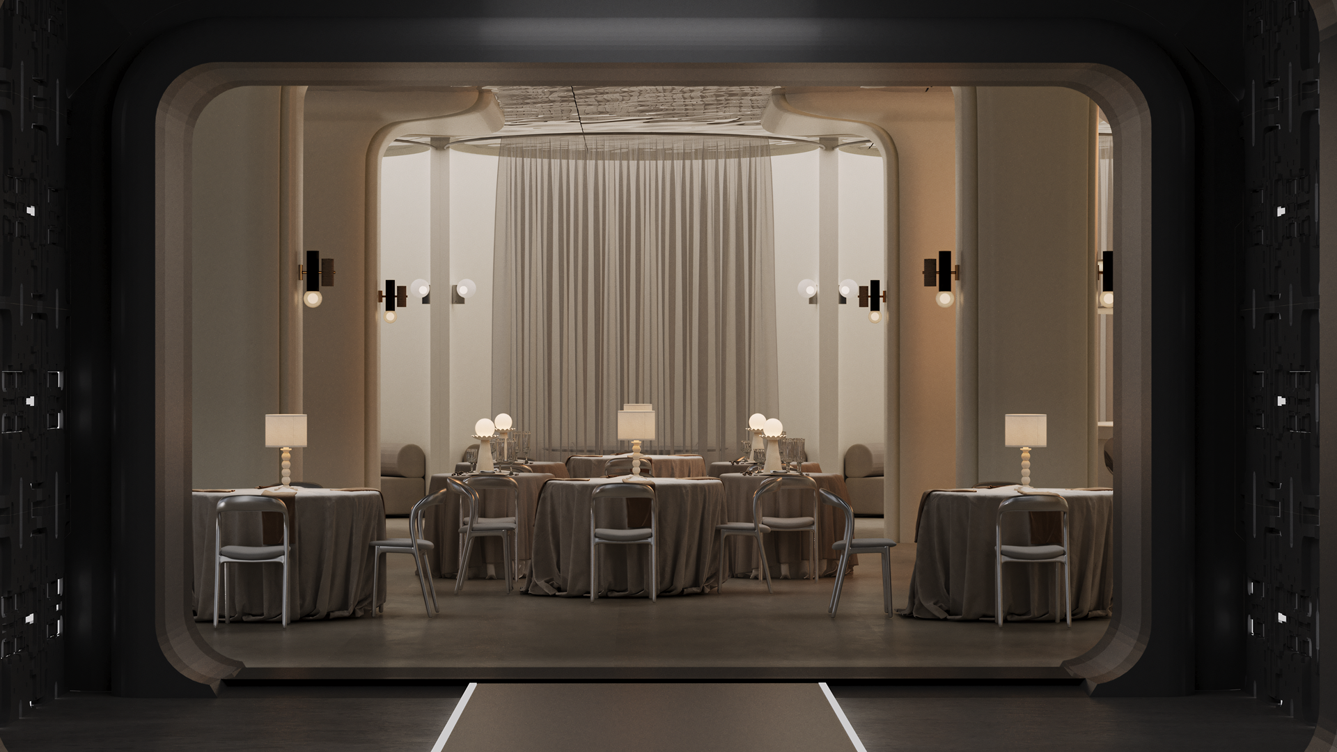 Проект отеля «Солярис» предусматривает сценарный подход к дизайну, где каждое пространство имеет свою функцию и эмоцию, следуя нарративу произведения.