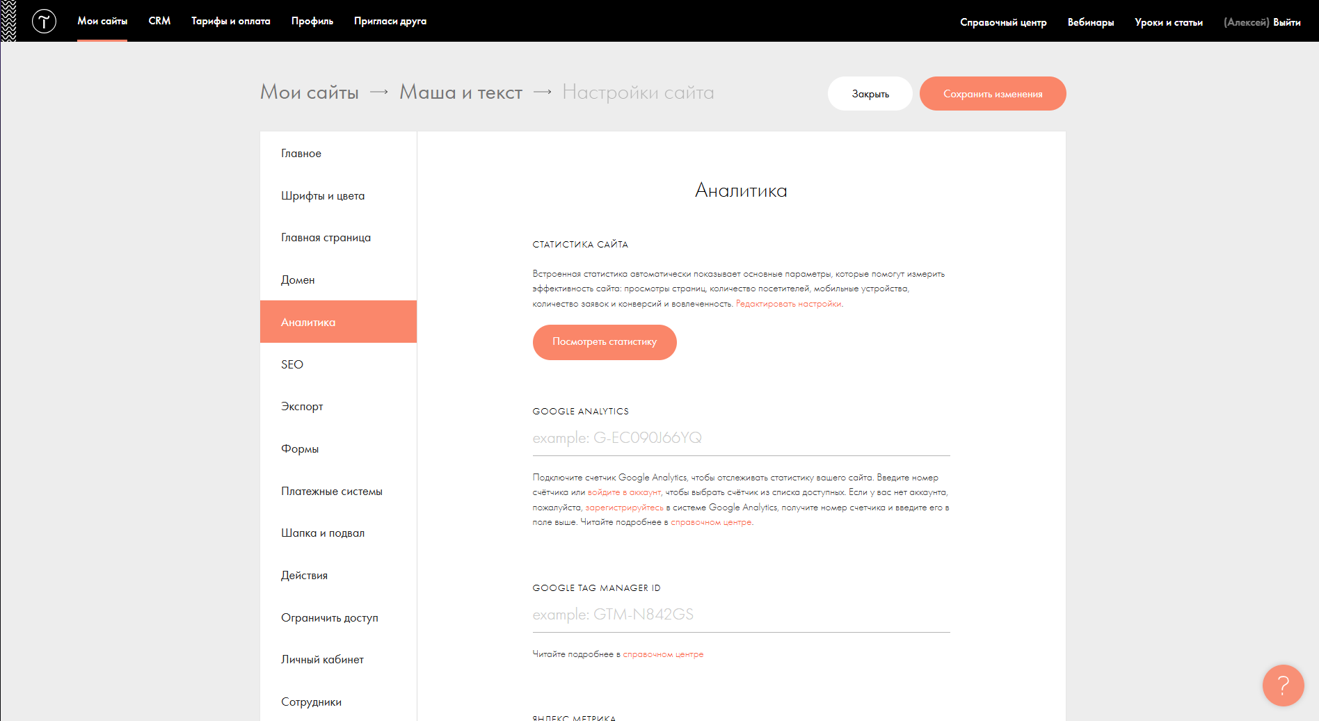Сделайте сайт, если его еще нет. Зарегистрируйтесь на Тильде, оплатите тарифный план Personal или Business, перейдите в раздел «Мои сайты» и создайте новый. Далее зайдите в «Настройки сайта» — с ними вы будете работать.