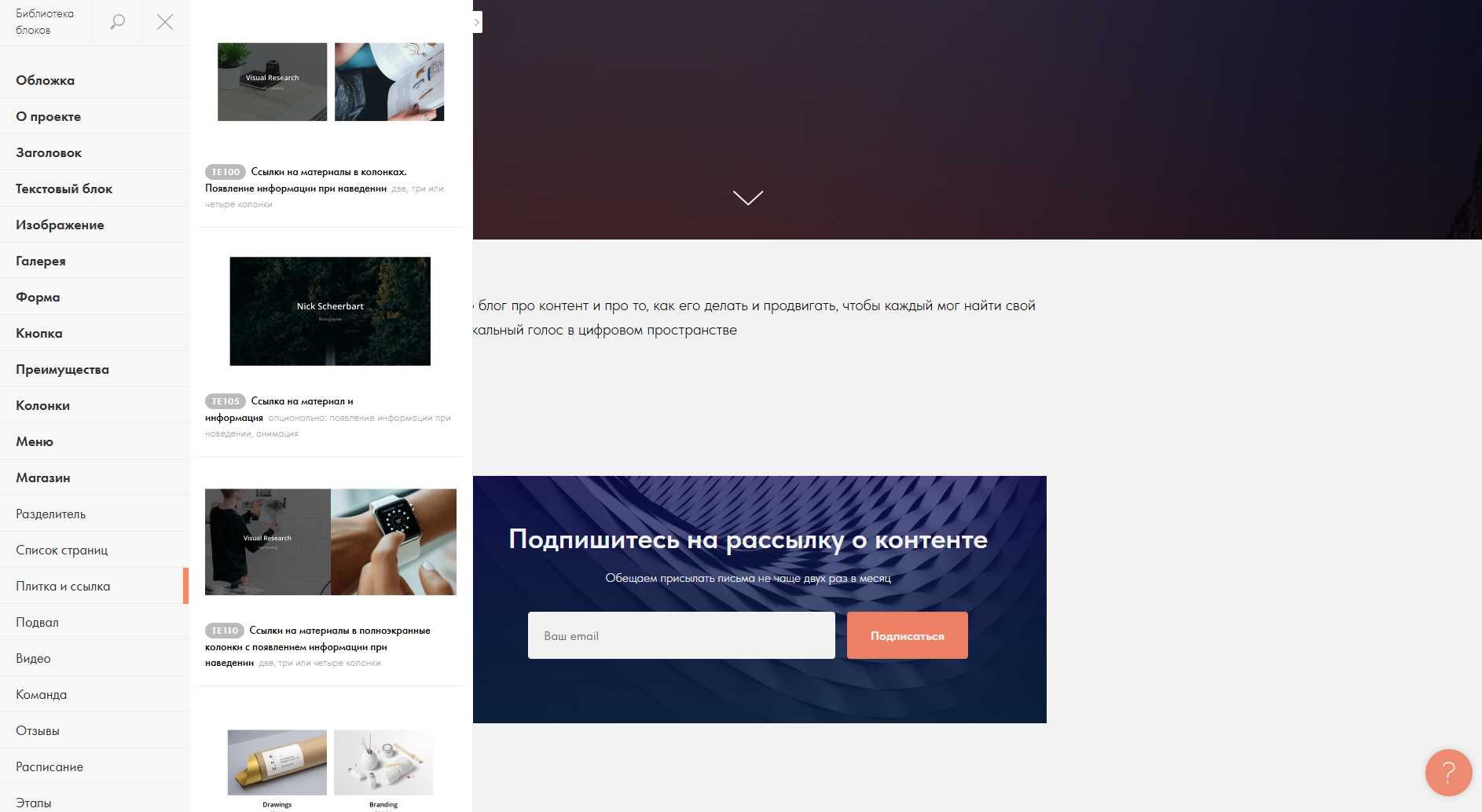 Также доступен Zero-блок — инструмент для гибкой настройки дизайна с нуля. Базовые блоки удобно использовать для типовых решений. Zero — если нужно больше свободы в дизайне и верстке.