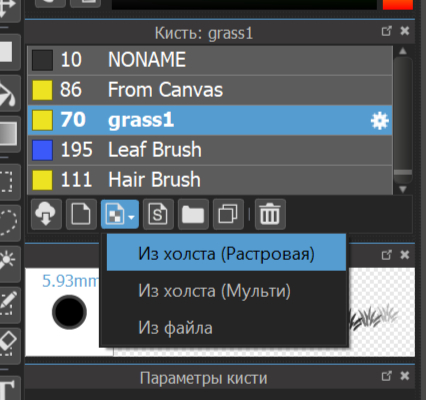 3. Затем выбираем, Добавить кисть - Из холста (Растровая)