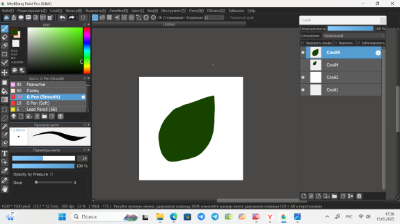 2. Рисуем любым инструментом, я предпочитаю G Pen (Smooth), листочек или травинки или что вашей душе угодно.