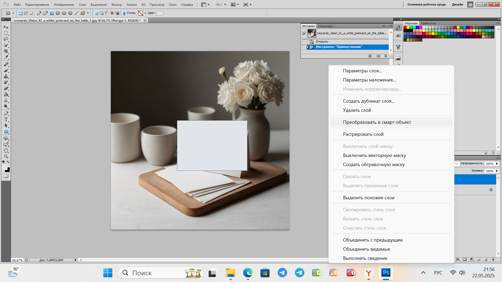 3. Кликнув ПКМ по созданному слою нажмите Преобразовать в смарт-объект