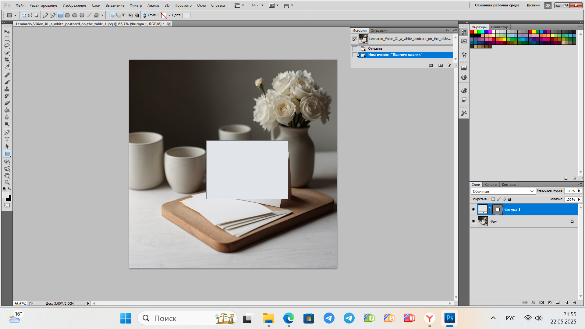 2. Я взяла фото карточки рассадки сделанное с помощью ИИ. С помощью инструмента Прямоугольник, белым цветом залейте приблизительную область