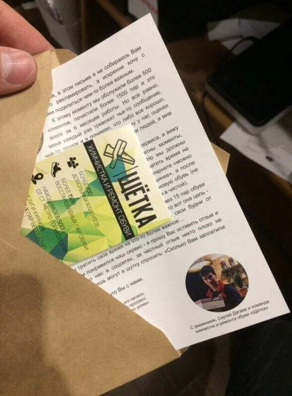 Также происходит развитие систем управлением лояльности — уведомления, обзвон клиентов, внедрение системы начисления бонусов. Каждому клиенту мы вместе заказом передаем конверт с разными полезностями.