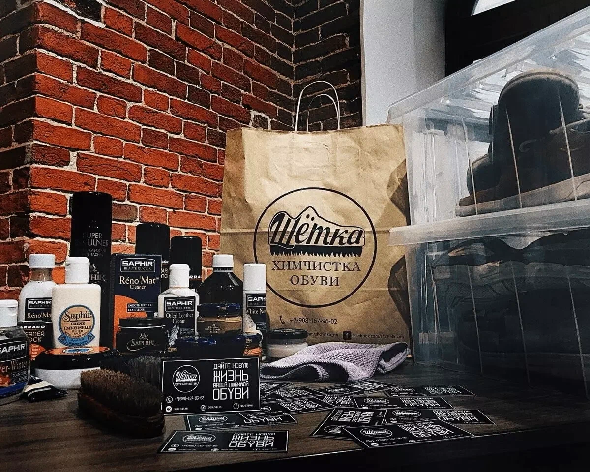 Щётка — это локальный обувной сервис в Нижнем Новгороде, который сначала задумывался как узкоспециализированный сервис по чистке обуви, а в итоге стал местом, где можно получить комплексную услугу: почистить, покрасить и отремонтировать обувь.