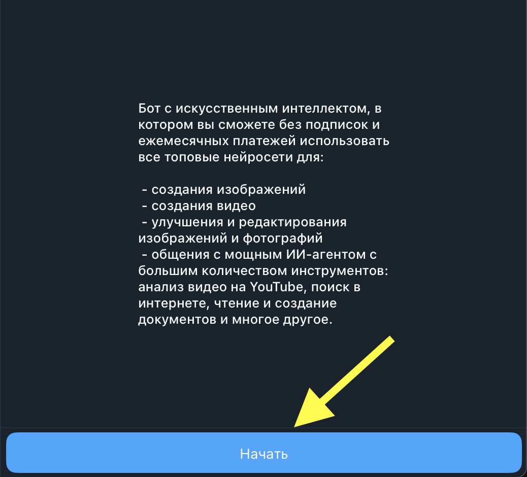 Если хотите использовать самые популярные генераторы видео и изображений, без VPN, регистраций, ежемесячных платежей и подписок - заходите в нашего бота https://t.me/bratuha2bot - он сделан в первую очередь для тех, кто не сильно разбирается в технологиях, но хочет использовать самые современные нейросети в простом и удобном месте.