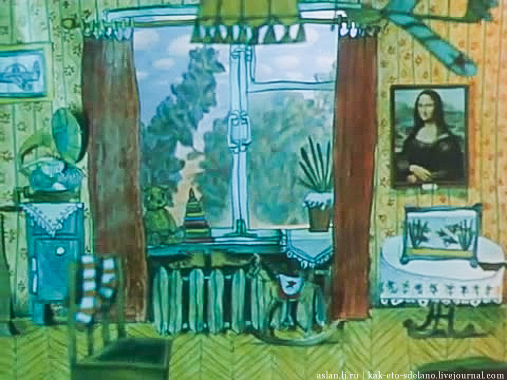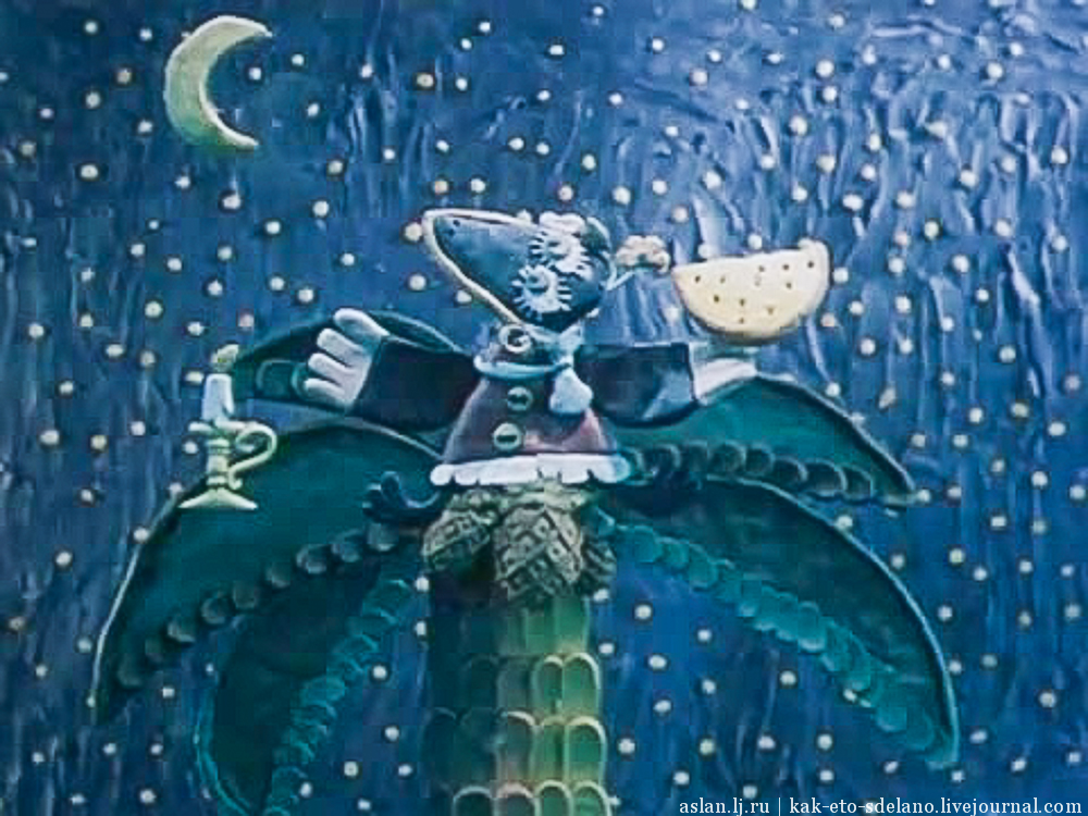 Пластилиновая техника была тогда еще в Союзе неизвестна. Потом уже Татарский со товарищи узнал, что подобные мультфильмы делали до них в Чехии и в Канаде, но тогда об этих работах в СССР ничего не было известно. Так что режиссер Татарский и художник-постановщик Игорь Ковалев придумали собственную технологию: на стекле делали наполовину объемную Картинку из самого обычного детского пластилина, купленного в магазине. Затем изображение постепенно размазывали, снимая каждый мазок. А потом пускали пленку в обратном направлении – и в кадре из бесформенной мешанины красок чудесным образом складывалась живая картинка.