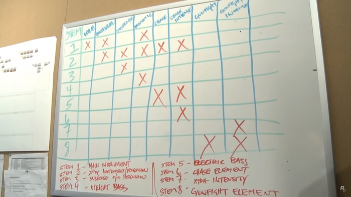 Некоторые стэмы даже начали напоминать своеобразный музыкальный диалог — этот подход Джексон затем применит в создании музыки к Red Dead Redemption 2. Композиторы прослушивали записанное, искали подходящие мотивы и на их основе выстраивали структуру музыки так, чтобы резкая смена стэмов в зависимости от действий игрока не резала слух.