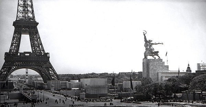 В мае 1937 года советский павильон предстал перед изумленной публикой. Он стоял прямо напротив павильона нацистской Германии, увенчанного орлом со свастикой. Блестящая стальная скульптура, устремленная в небо, затмила своего идеологического противника. Она стала сенсацией. Французская пресса писала: «На Парижской выставке они были прекрасны, как юность мира». За этот проект Вера Мухина и архитектор Борис Иофан получили высшие награды Гран-при выставки.