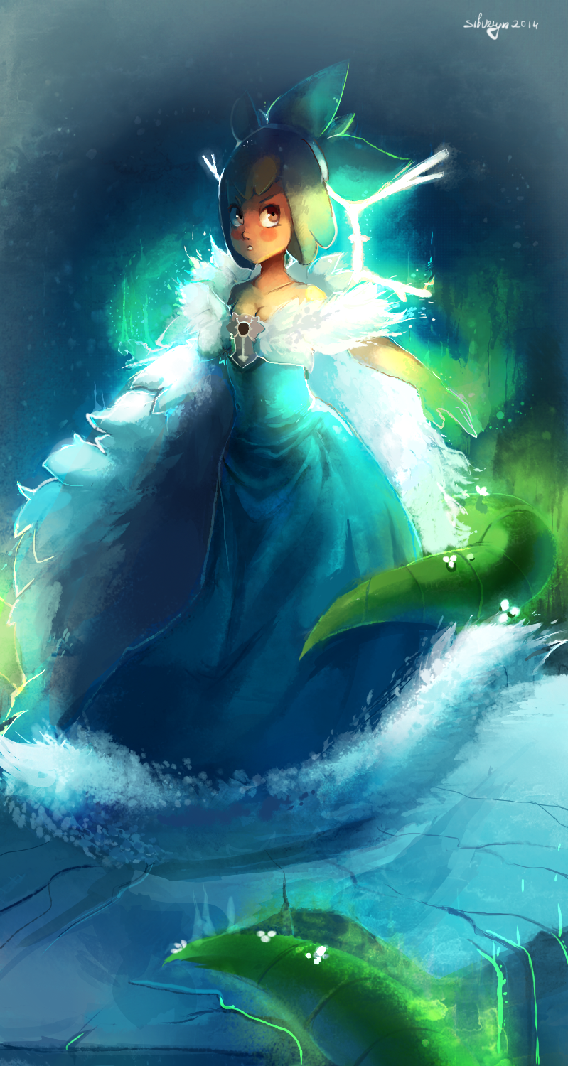 Я не знаю, что это за персонаж, но стиль рисовки предполагает что-то такое подростково-округлое, а не так как у тебя. Но это моё мнение:) Всё равно на твоём рисунке не в том каком-то месте грудь. И объёма нет у неё.