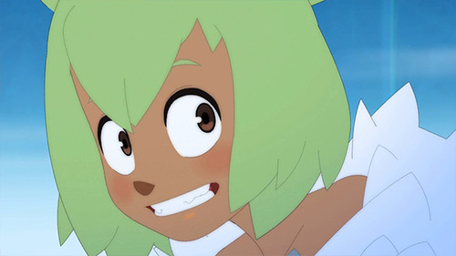 Кастует спелл жи. По канону сиськи есть,за мехом они скрыться не могут,так что все ок. Плюс тут изображены события через шесть лет,сиськи выросли всеок.