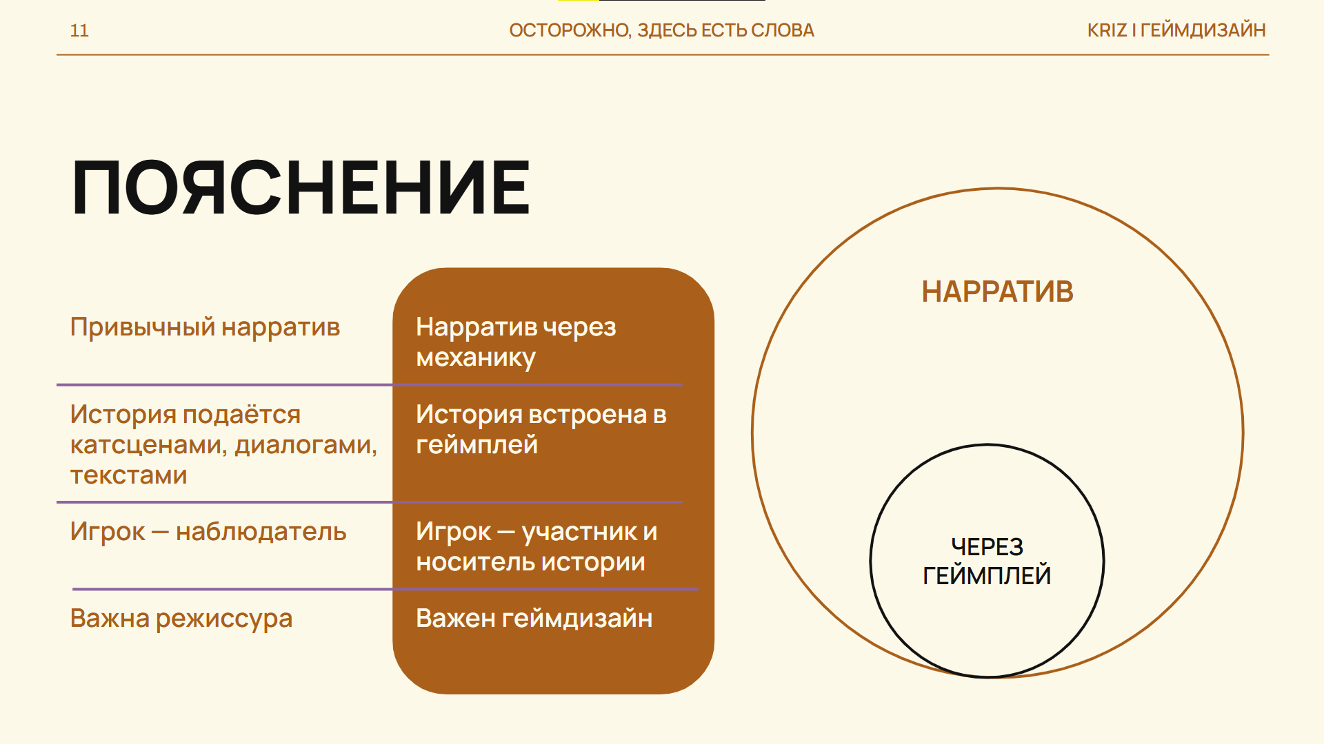 Нарратив, завязанный только на визуале, без связи с геймплеем — это музей. Красиво, но нединамично, мертво. А игра — это интерактив, где ты в главной роли. И сам создаёшь нарратив.