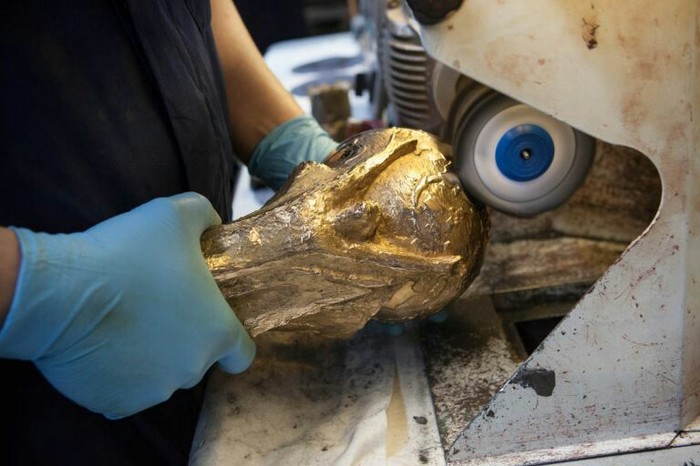 Затем его покрывают специальным лаком, чтобы трофей сохранял свой блеск и свежесть.