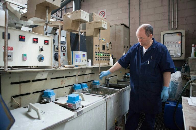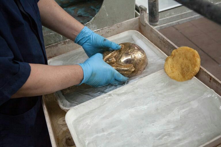 Потом кубок помещают в ванну для гальванизации (метод покрытия одного металла тонким слоем ).
