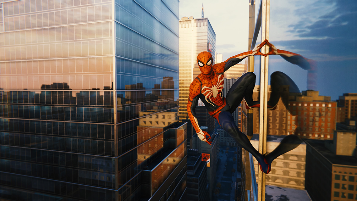 В боевых сценах Spider-Man SSR накладывается прямо на кубическое отражение. Относительно небольшие (если сравнивать с панорамами виртуального Нью-Йорка) помещения позволяют увеличить нагрузку на систему, поэтому cube map отвечает за статичную часть отображения (стены, потолок, мебель), а SSR — за подвижную (противники и главный герой).